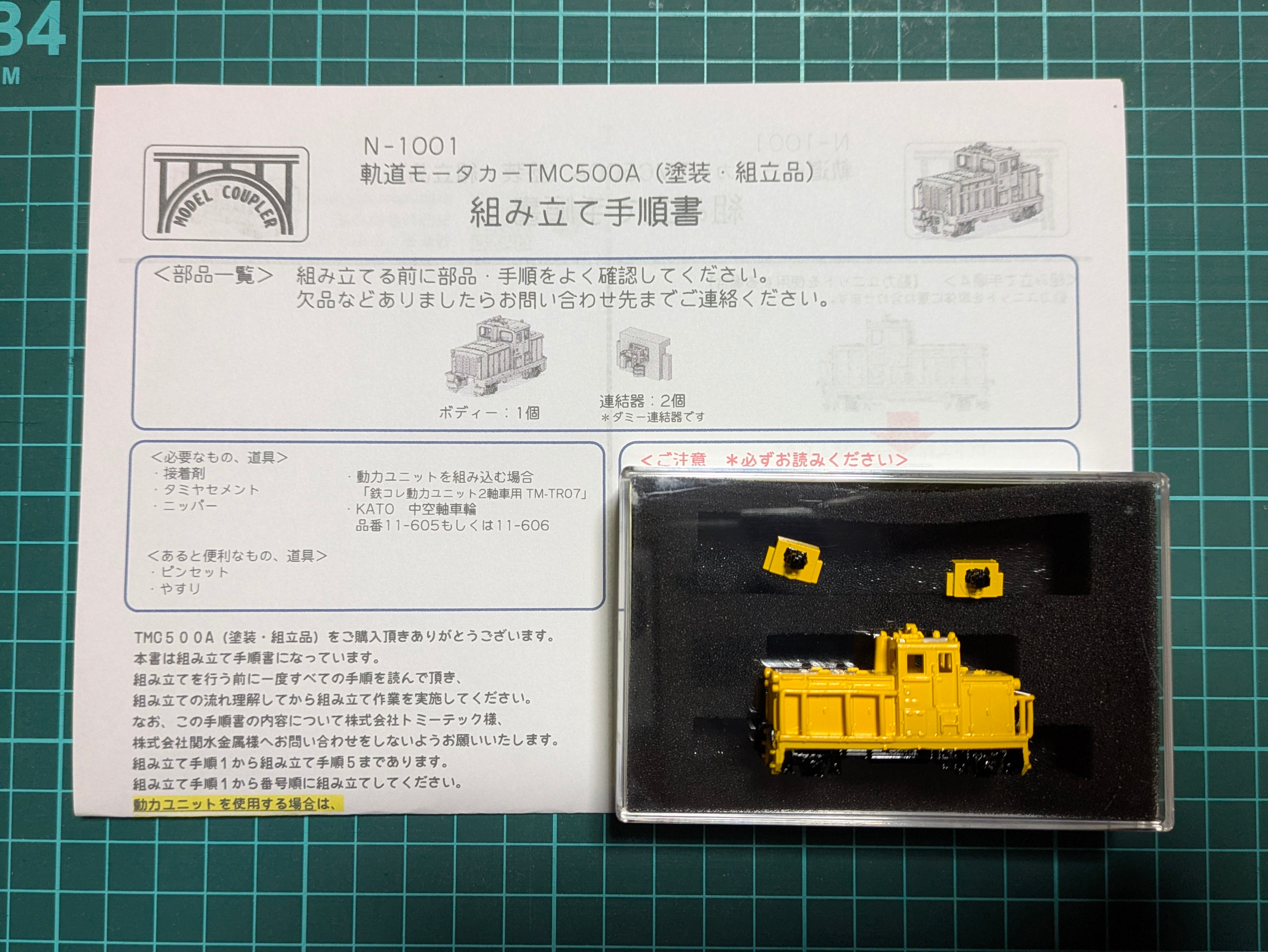 N-1001 軌道モーターカー TMC500A 車体(黄)、床下(黒)塗装、手すり組立済み品です。