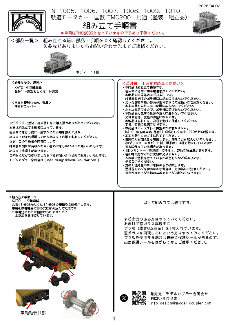 N-1005 国鉄 軌道モーターカー TMC200A 車体(黄)、床下(黒)塗装、組立品