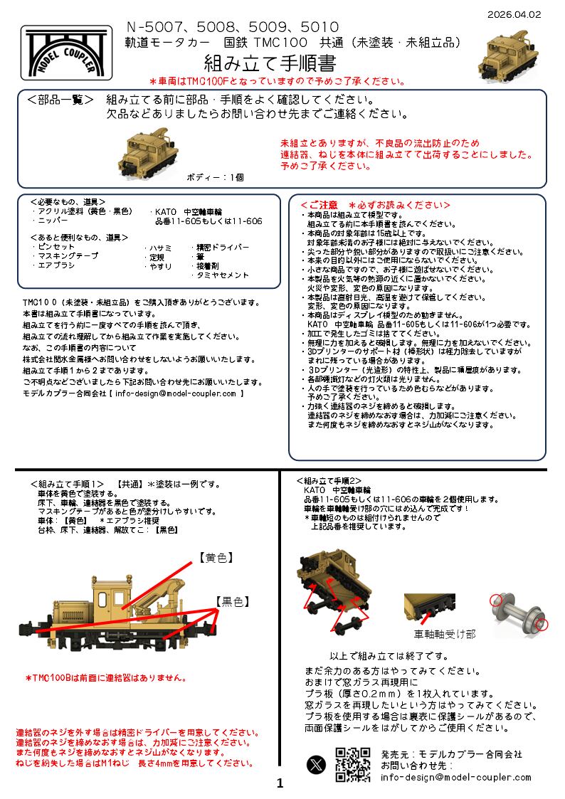 N-5009 国鉄 軌道モーターカー TMC100F 未塗装品です。