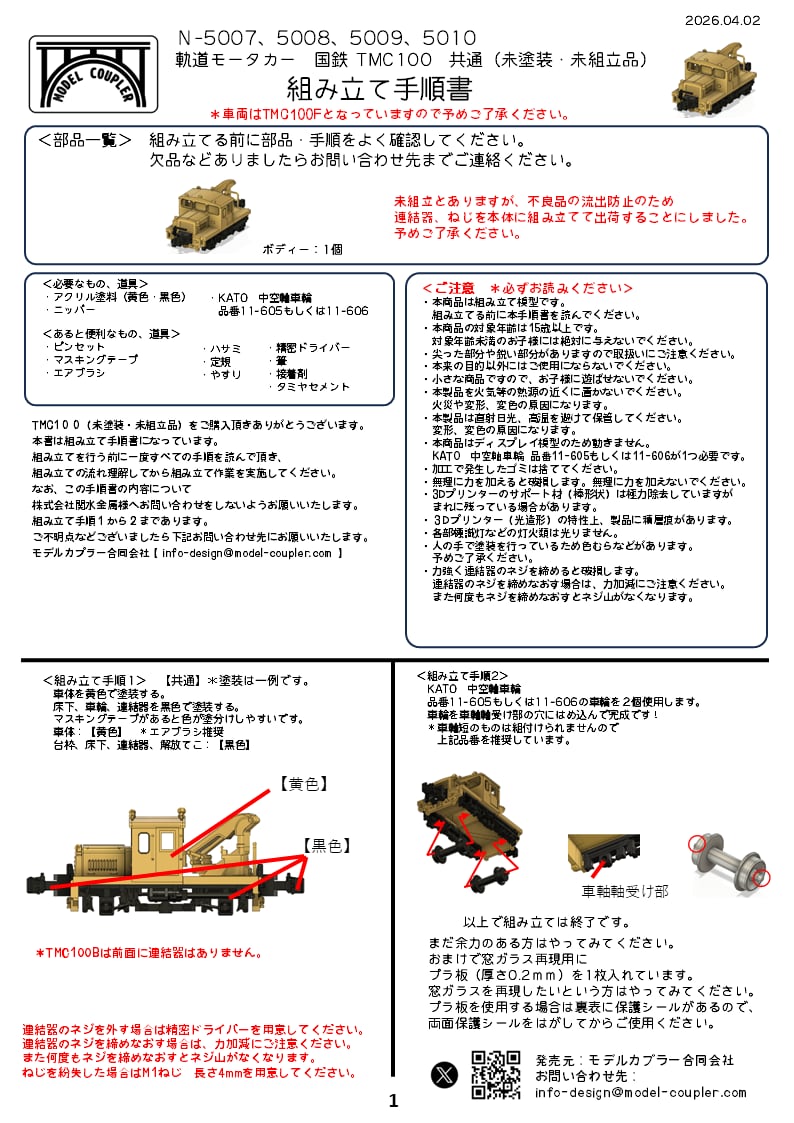 N-5010 国鉄 軌道モーターカー TMC100F クレーン無 未塗装品です。